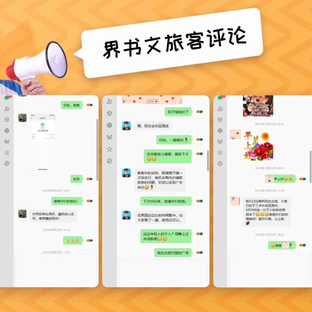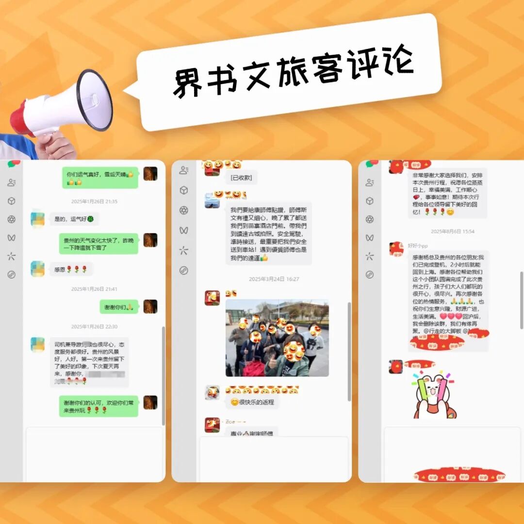 那些给我们写过长评的游客,会把我们推荐给自己的家人、朋友、同事;那些走过一次的老客,会一次次地选择我们,从贵州到广西,从春夏到秋冬;那些只和我们聊过一次的客人,会放心地把自己和家人的旅行,全权交给我们。这份来自私域的、沉甸甸的信任,比公域里任何一条好评截图,都更有力量,也更让我们珍惜。
